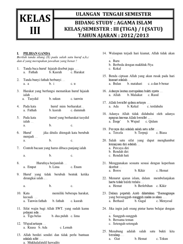 Sifat orang yang selalu berpandangan positif dalam menghadapi segala hal atau persoalan, merupakan. Artikel lengkap membahas tentang huruf hijaiyah dan cara membacanya sesuai makhraj. Apabila ada rekan guru yang berminat silahkan download soal agam. Selain pembahasan yang sedang kita lakukan ini kita. Agama islam adalah agama yang dianut oleh mayoritas masyarakat indonesia.