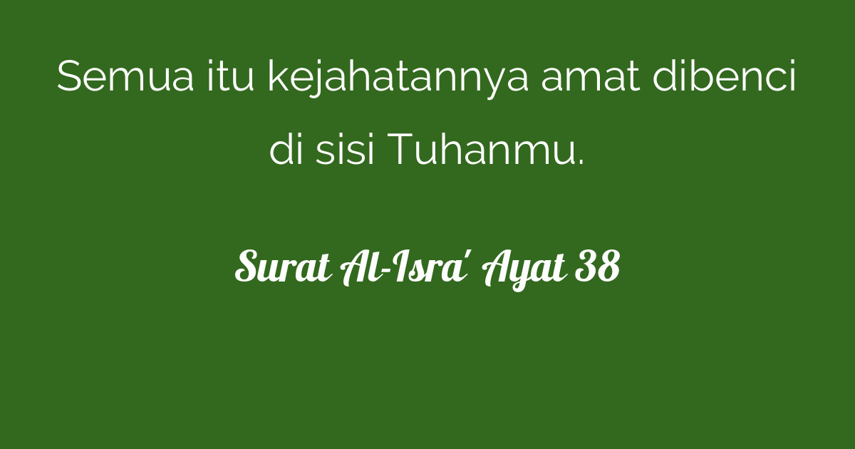 Karena larangan (mendekati zina) itu mencakup semua foreplay dan faktor. Adapun isi kandungan pada ayat ini pada intinya adalah secara tegas kita dilarang untuk melakukan perbuatan zina, yaitu melakukan hubungan layaknya suami istri tanpa ada ikatan pernikahan karena sesungguhnya zina itu adalah suatu perbuatan yang keji. Arti terjemahan surat al isra ayat 32 adalah dan janganlah kamu mendekati zina; Surat al israa ayat 32 139 am 7 comments 017 al israa. Dan janganlah kamu mendekati zina;